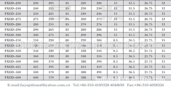 兩個導向環(huán)、兩個擋圈和一個密封環(huán)由聚四氟乙烯復合材料制成,彈性體由丁腈膠制成。
